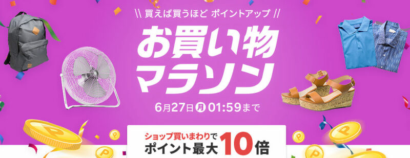 楽天で「お買い物マラソン」開始。今回はスロットなし。6/27 01:59 まで